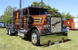 PHOTOS: #1) Michael Gully’s 1949 Freightliner; #2) Kurt Smistik’s 1981 Freightliner; #3) Dennis Chan’s 1961 International; #4) Bruce & June Thomas’ 1952 Diamond-T; #5) Mike Hibma’s 1981 Pete & 1966 Fruehauf; #6) George Cape’s 1953 Peterbilt; #7) Richard Mac Innis’ 1958 Kenworth; #8) Dennis & Diann Wells’ 1934 Ford; #9) Jim Dobbas’ 1952 Kenworth & 1952 Utility; #10) Ed Rocha’s 1979 Kenworth & 1979 Wilson; #11) Dan Thomas’ 1950 Peterbilt; #12) Mike Colton’s 1950 White.