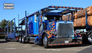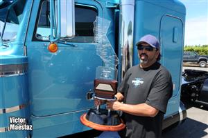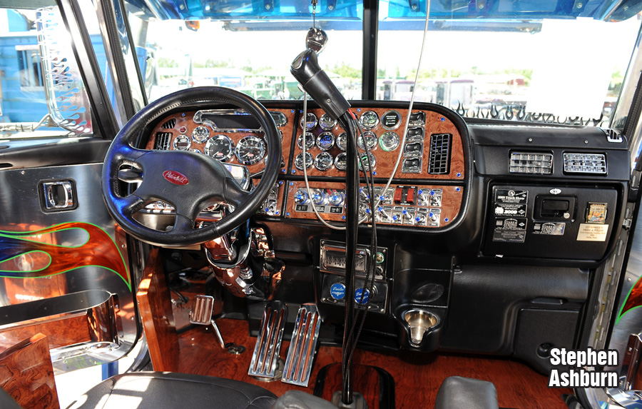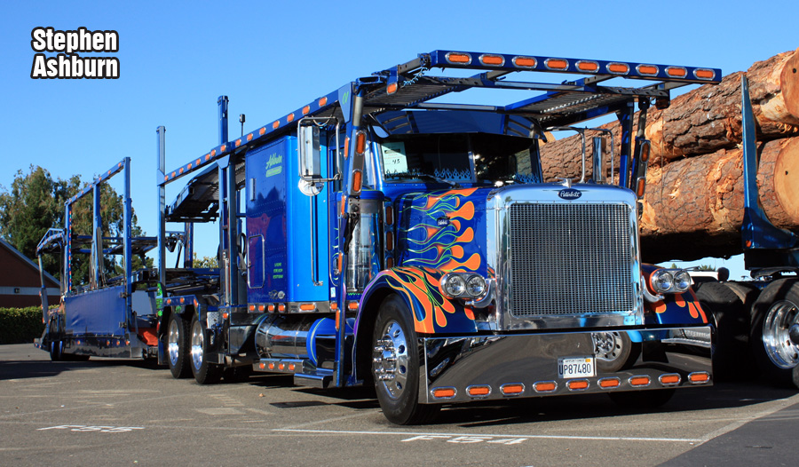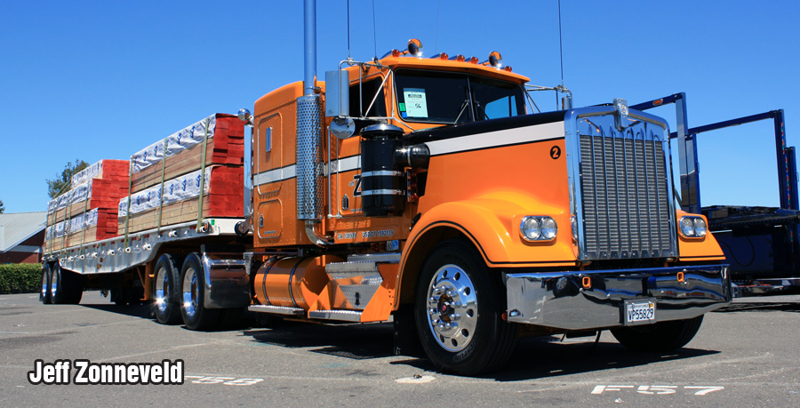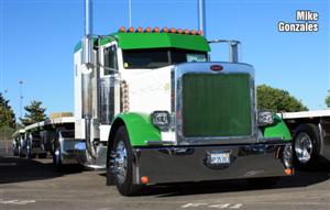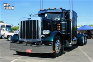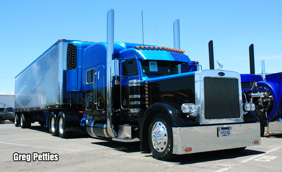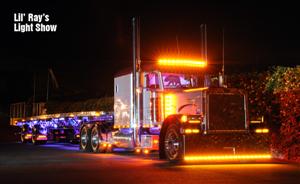 Some cool trucks that did not receive any awards included Mike Hansen’s red and white Pete log truck, Gregg Petties’ blue and black Pete and polished stainless reefer, Jeff Zonneveld’s yellow and black KW, Mike Green’s 1964 green Pete transfer, and Lil’ Ray’s two flashy Peterbilts (which really looked good at the light show).