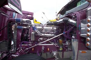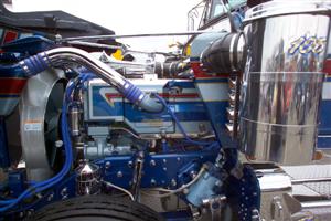 to swing the motor out of the frame. Stephens’ 1995 Freightliner Classic
