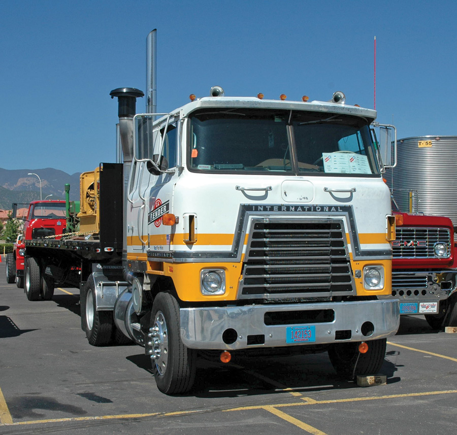 When Zack Bender of Elroy, Wisconsin, bought this 1979 International 4070B Transtar cabover at an auction about eight years ago, it was already in pretty good shape. Besides replacing the fifth wheel (because it was missing) and a cracked piston, the truck did not need any other mechanical work. The Transtar’s 290 NTC Cummins engine and 9-speed Roadranger transmission still run very well. Originally purchased new by Reynolds Moving and Storage in Madison, Wisconsin, the International worked hard for many years. Reynolds was an agent for United Van Lines, so the truck racked up some miles. After Zack bought the truck, he spruced it up a bit by installing Budd wheels on the front and new aluminum fuel tanks. Although it received some freshening up, the cab still sports its original paint job. The frame, however, needed to be repainted, so Zack took care of that and supplied a little TLC in general while he was at it. Also shown in the photo here is Zack’s 30-foot 1993 Wisconsin flatbed trailer. In addition to old trucks, Zack restores antique farm tractors and stationary engines. When he goes to truck or tractor shows, Zack uses his International, hooked to this flatbed, to haul his tractors and engines to the events. He said, “I love driving all the old iron down the road – it runs well, looks good, and its fun, too!” We sure can’t argue with that logic.
