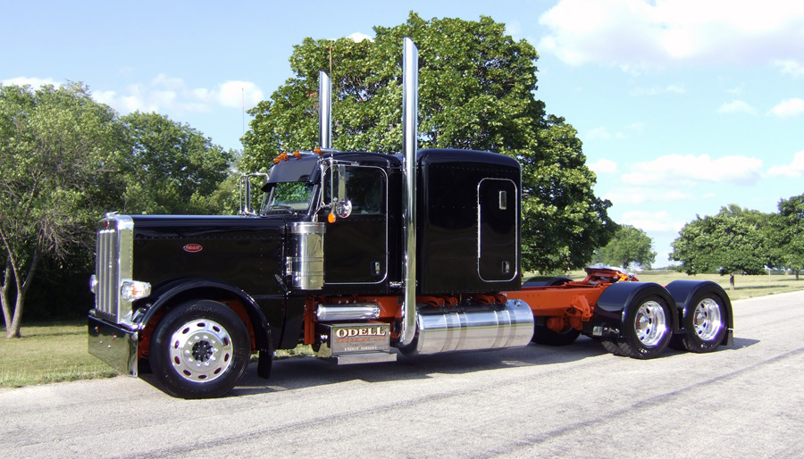 Now that Dan was on foot, he needed a new truck fast. Clint pulled some strings at the factory and was able to order him a 2013 Peterbilt 389 glider kit, which arrived just three months later. Working with Odell Trucking, owners Jim & Vicki Odell were nice enough to pull out their “Blacky” show truck from the shed and let Dan use it while he waited for his new truck to be built.