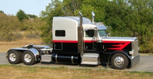Randy’s new ride is a 2013 Peterbilt 389 with a 70-inch high-roof sleeper. The truck was ordered with solid black paint, a Cummins ISX with 525 horsepower, an 18-speed transmission, and a 280-inch wheelbase. The truck was also equipped with a car-hauler front axle, heavy-duty 40,000-lb. rears, Low AirRide suspension, extra tool boxes, the Platinum interior package with keyless remote, and aluminum cross-members and 5th wheel (to help save some weight).