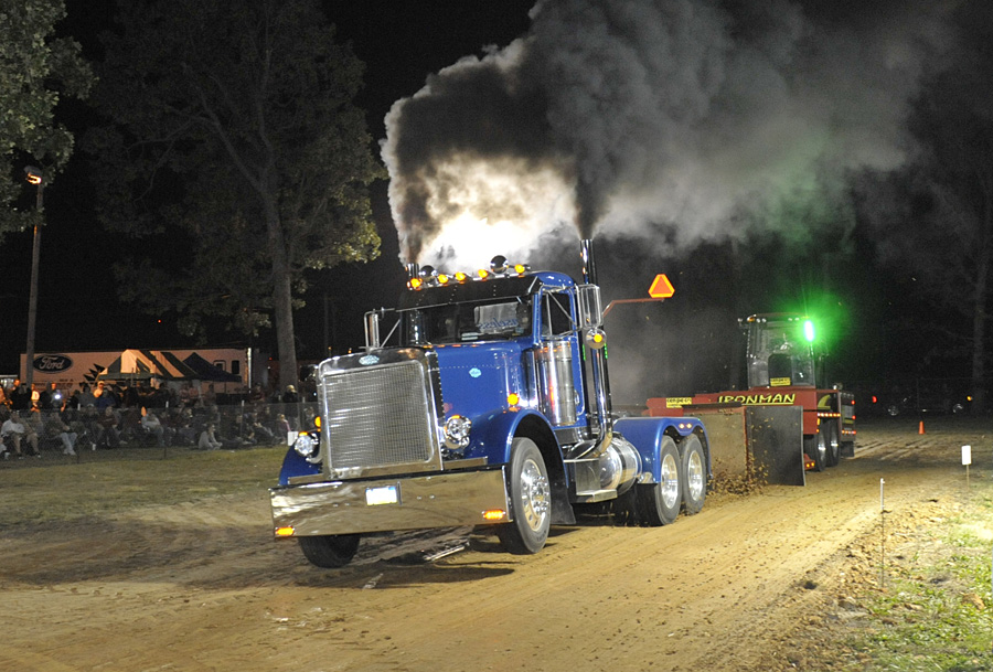 For most people, Friday night’s first-ever truck and tractor pull was the highlight of the whole show. After being suggested by longtime pullers Jerry & Connie Mullenix and Tim Drake, the idea took off. With help from Richard Morris, the folks at Atnip Construction in Jasper, MO donated all of their time and built the course, hauling in tons of clay for the 300-foot long track, making sure it was all rolled, packed and rock-free. With thousands in attendance, both from the show and from the surrounding communities, the crowd was first entertained by the “Cannonlady” – a human cannonball that shot herself 150 feet out of a cannon and into a net, after sailing as high as 60 feet. Sponsored by Lincoln Chrome, this amazing spectacle started the truck and tractor pull off with a bang – literally!