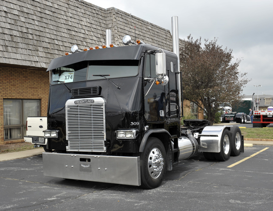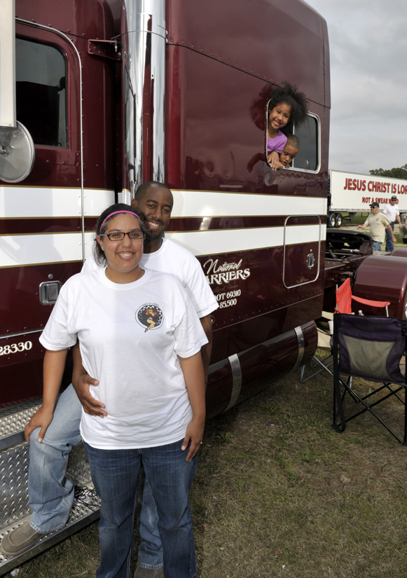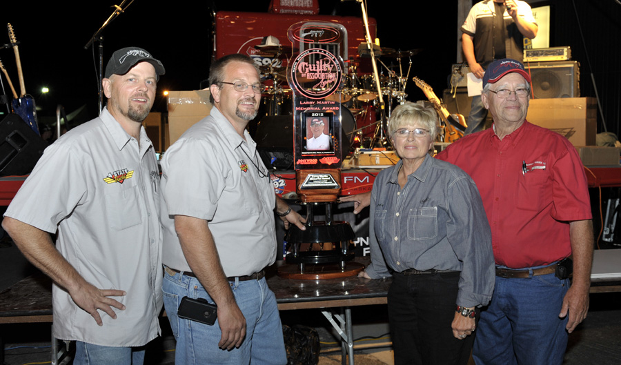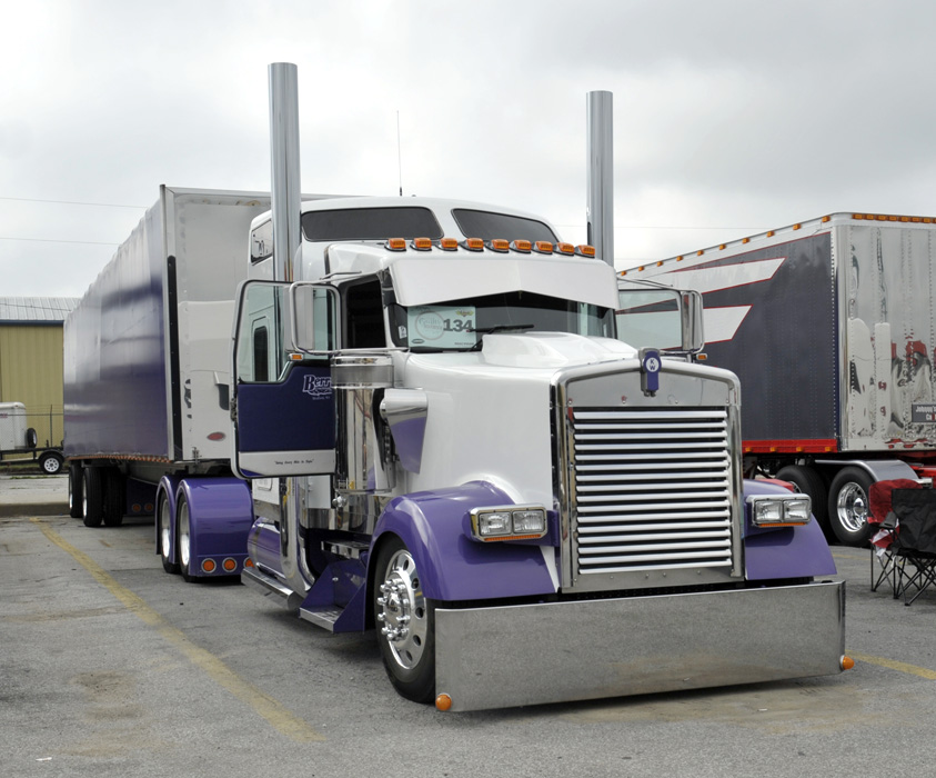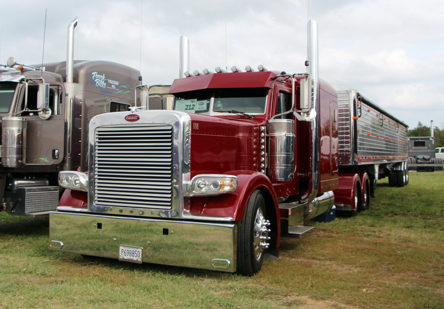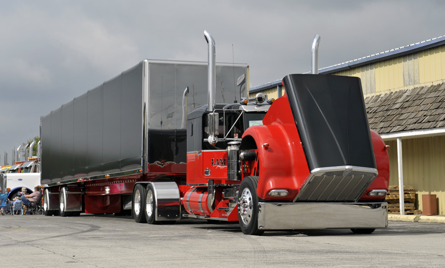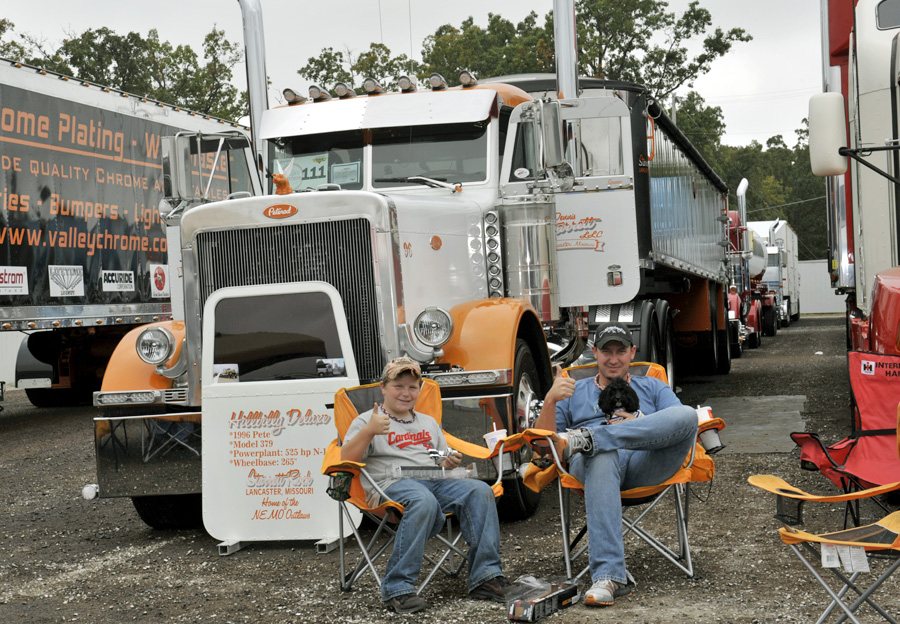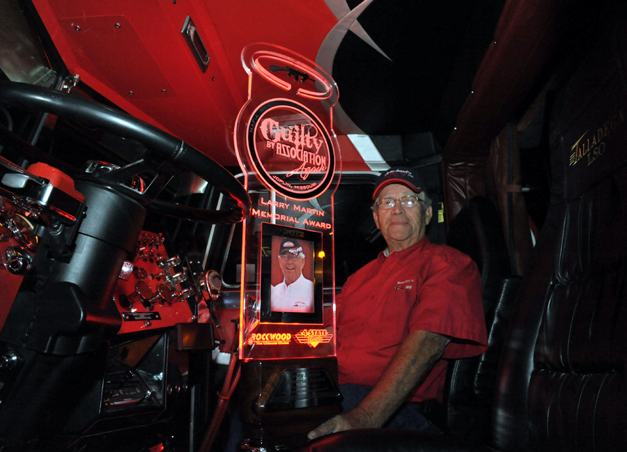 After the silly awards were presented, it was time for the real ones. The People’s Choice Bobtail trophy went to Jeremy Graves of Farmer’s Oil for his 2012 orange and mocha Peterbilt 389, while the People’s Choice Combo award went to Spencer Starrett and his white and orange Pete 379 daycab and Mac end dump trailer. The Competitor’s Choice Bobtail trophy went to Carl Bardroff Jr. for his dark blue Peterbilt 4-axle with white stripes, and the Competitor’s Choice Combo award went to Dusty Berry for his flamed purple and burnt orange Peterbilt 379 and matching heavy-haul trailer. The Larry Martin Memorial Award was presented to Paul Marcotte.