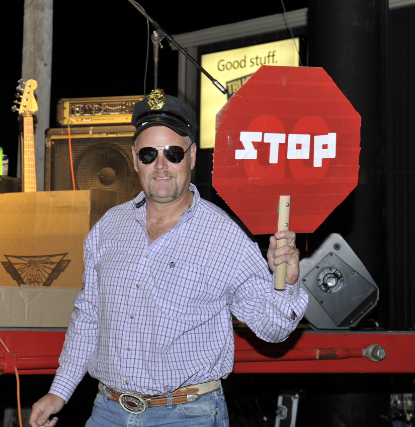 The “fun” awards were handed out first, with Bossman Bryan and his brother Brice on the microphone. The “Longest Wheelbase” award went to Brad Parsons for his 330-inch long W900 Kenworth. His prize was an “emergency spill kit” for when he tears up his tanks and starts spilling fuel (the “kit” consisted of a bright yellow bucket filled with various sponges, towels, rubber gloves, and goggles). The “Mr. Cool” award went to Victor Thomas of Platinum Enterprises (his award was a black leather jacket and dark sunglasses). The “Longest Tow” award went to Jade who came all the way from central Canada (their prize was a five gallon jug of diesel fuel). The “Mr. Goodtime” award went to Dan Look, who is always looking for a good time (he got a bottle of aspirin and a Gatorade, so he could get rehydrated). The “Biggest Heart” award went to the First Class crew for their generous donation in the convoy, and special awards were given to Jason Alt for his awesome parking control (a cop’s hat, a whistle, Aviator sunglasses and a big red “STOP” sign) and Dave Amick, who has emceed every GBATS show and always brings out the stage (he was presented with a giant key to the store).