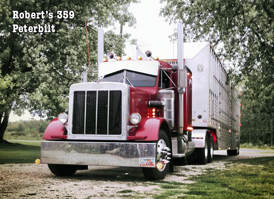 My last “young gun” was referred to me by fellow 10-4 photographer and writer Troy Miller. Troy met Robert Campbell, Jr. at the truck show in Salt Lake City this summer and was pretty impressed. At only 23 years old, he owns his own cool truck – a 1986 “Sexy Red” and black 359 Pete with a 3406B Cat. Robert told me that he is a “young cat” with an old-school truck. Robert’s dad was a driver until cancer forced him off the road. At the time I talked to Robert, his dad was in San Diego, and with the help of chemo and good friends, he is doing better. Robert used to pull belly dumps, but now he pulls a cow trailer, and loves it! Running from California to Nebraska, Robert works hard every day to help his dad live comfortably and worry-free while kicking cancer’s ass!