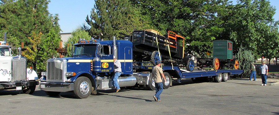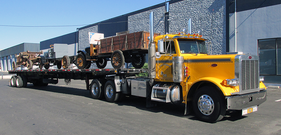 Jim’s call for help was answered by a number of longtime truckers. The rescue party consisted of several highly respected two-stick truckers who donated both their time and equipment to make the move happen. These are dedicated people with a love of trucking and fuel lines going back for decades. Folks like Ed Rocha (Rocha Transportation of Oakdale, CA) with nearly 90 years of family history; Ken Talley (Talley Oil of Madera, CA) with over 65 years of trucking history; Terry Klenske (Dalton Trucking of Fontana, CA) with 50+ years; Al Nunes (A.C. Trucking of Manteca, CA) with well over 30 years under his belt; and Dan Thomas (F.D. Thomas Painting of Medford, OR) who is a lover and collector of old trucks. For sure, we can’t forget the lead man, Mr. Jim Dobbas (New Castle, CA) with 65 years of experience behind the wheel, as well. Although not all of the above men were personally behind the wheel of their trucks moving the antiques, it was their companies that made it all possible.