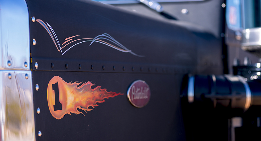 Re-assembling the truck, Chris and Brent went to work replacing all of the rig’s incandescent bulbs with LEDs (just the bulbs – the lights still have the old look to them). After that, the exterior accessories were installed with mostly stock or understated components, like the factory visor. The “little window” 359s were great-looking trucks to begin with, having a “chopped” look after the taller cabs were introduced, so not much is needed to gets these trucks looking right.
