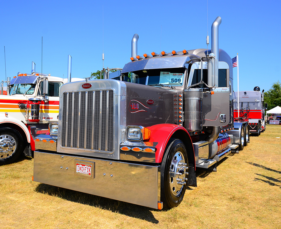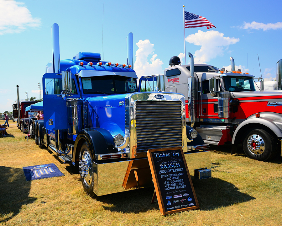 Among those of us working against the hot August sun was Ernie and Carol Bates and their classic 1970 narrow-nose Peterbilt. This tried-and-true cattle-hauling rig is always a crowd favorite, and it’s easy to see why. With all of the right touches in all of the right places, the truck looks just right without being overdone. Another old friend that showed up was Kevin Schnug and his clean 379 flat-top Peterbilt. With a recently re-done interior, the truck is looking even better than before. Way Trucking and their classic 362 Peterbilt cabover was there, too, and it did not disappoint. The perennial trouble-makers of Tinker’s show, the Disher brothers and their rigs, were in attendance, as well.