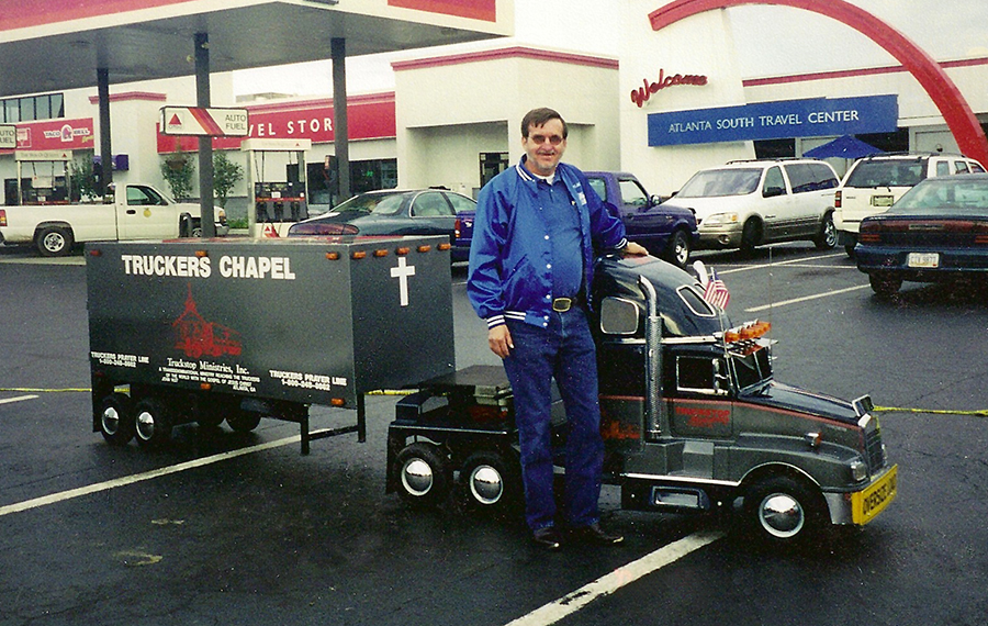 In 1974, while still trucking, they moved to Atlanta and began a deep study of God’s Word at a Bible-believing church. God used Joe to win souls as he traveled the United States. He would talk with truckers like himself about the problems we all face, and how Jesus could help, if they just turned those problems over to Him. In 1978, he was called to preach at a church in Dumas, TX where he was invited to share his testimony. Later that year, he was licensed into the ministry, and in 1980, he was ordained. Joe and Jan started hosting truckers’ fellowship meetings in 1981 at the T/A in Georgia, and these meetings eventually led to the formation of Truckstop Ministries, Inc. (TMI).