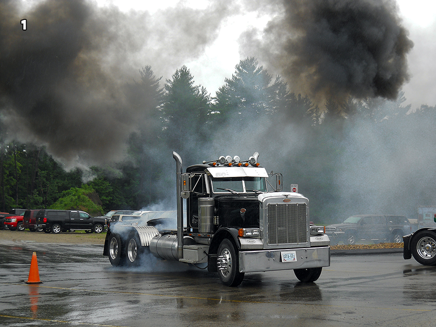 Photo 1: A show ‘aint a show without a show-off, and Brian Forst quickly took that challenge with his 2000 Pete doing a bit of the burnout thing. The tweaked Cat in this rig is pushing over 1,000 hp, allowing Brian to have some fun torturing the tires.