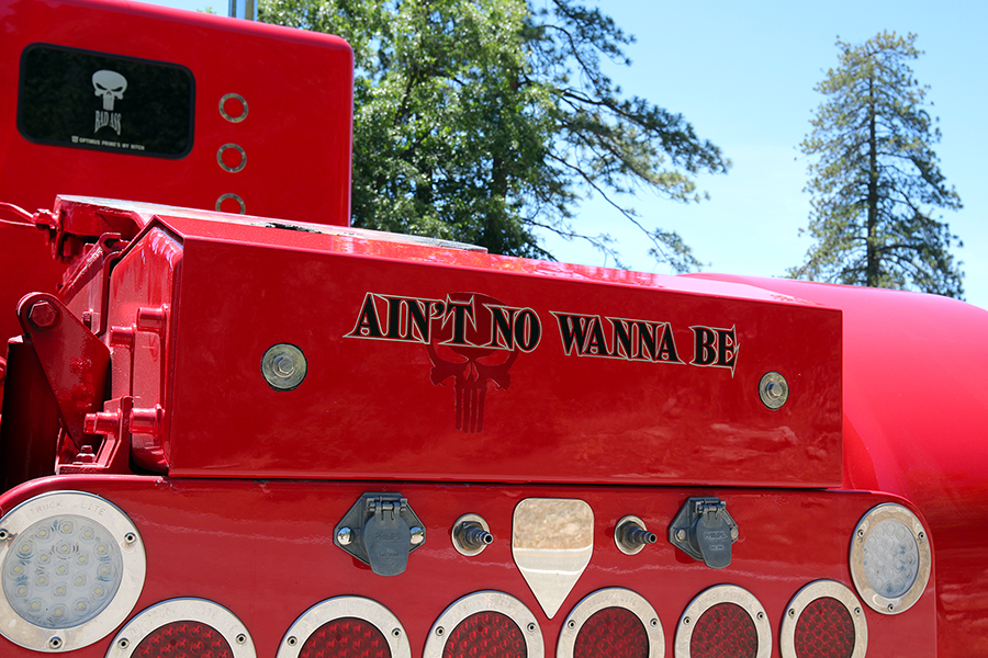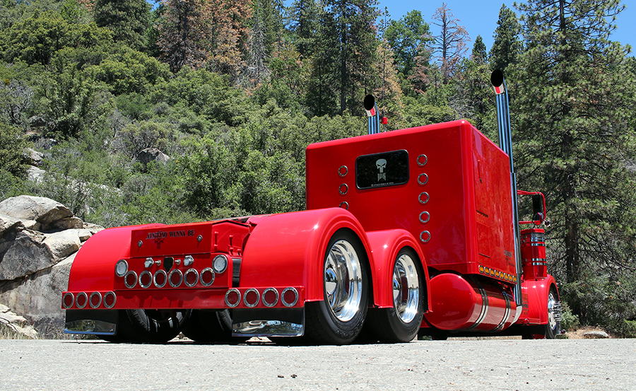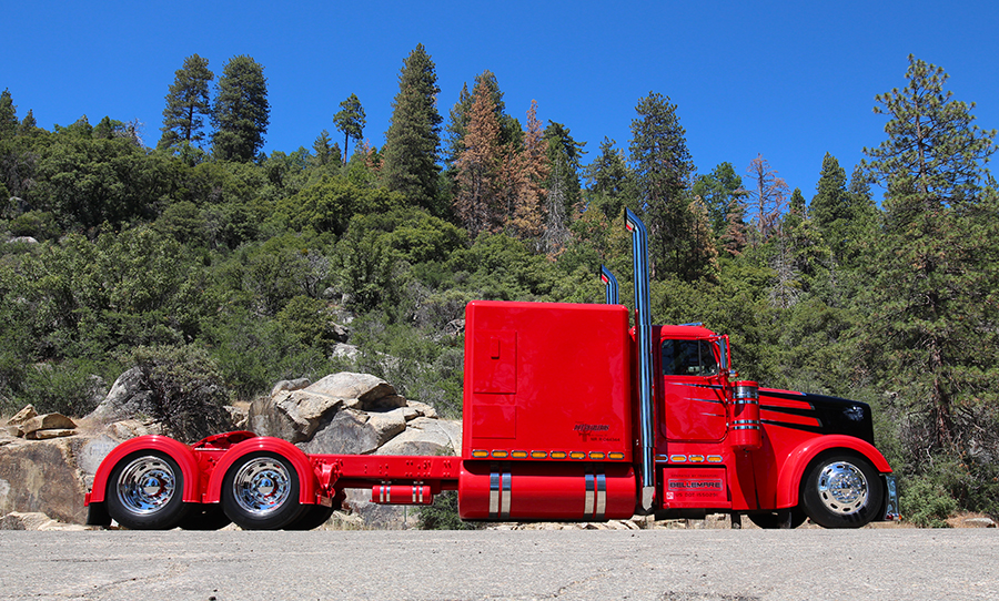 Dave’s attitude and style has always been anti-factory – his goal is to have nothing stock or store-bought on his truck – everything custom and/or hand-built. And he is pretty close to reaching that goal with this amazing Freightliner (although there isn’t much “Freightliner” left anymore). When he finished this last refresh, he brought the truck out to California and came to my area in the central valley where we shot the truck up in the mountains by Sequoia National Park. His longtime girlfriend Kime flew out from Canada the next day to join him and they made a nice little west-coast vacation out of the trip. They even stopped by my house for dinner, and we all enjoyed a few cold ones and some of my famous smoked baby-back ribs.
