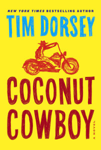 You’ve sunk a lot of money into your humble abode. The kitchen is perfect for gourmet meals and light snacks alike. The carpet is new, the furniture is new, you added fencing and a deck. Not even paint is cheap anymore, but in the new book “Coconut Cowboy” by Tim Dorsey, money isn’t all that’s sunk in a house in Florida. When Peter and Mary Pugliese saw the old Victorian home high up on a hill, they didn’t fall in love with the house as much as they loved the area. From a New Yorker’s point-of-view, real estate costs in Wobbly, Florida, were incredible – and the friendliness of the villagers only added to the charm. It also helped that Wobbly was close to Peter’s new job as a geologist. With sinkholes an issue in many Florida areas, he knew his work was important; he was, therefore, quite happy to help his new neighbors when they specifically requested him for a project they were tackling. As Wobbly’s water commissioner, police chief, councilman and banker, Vernon Log was glad to see someone like Peter move into town. Peter’s expertise could help eliminate the pesky lack of permits to build a subdivision on lots that weren’t stable, and the sooner it was done, the better. With that, plus an illegally-annexed strip of highway, an illegally-run speed trap, and a money-laundering facility under Vernon’s watch, yep, a guy like Peter would be nice to have around. Where has the American Dream gone? Does it still exist? Those questions bothered Serge Storms and, because questions need answers, he headed south from Louisiana to find out. Lawn darts, historical markers, greasy spoons, they all meant something so, with his sidekick, Coleman, and a modified Harley motorcycle, Serge headed through Florida to take pictures, capture the dream, and carefully observe. As a man of dubious morals, Serge liked to make things right. He hated injustice, and he really, really hated when an innocent man got scammed. I found it ironically amusing that, early in this book, author Tim Dorsey’s characters talk about old Looney Tunes cartoons, but that madcap, improbable, wild-race-around goofiness pretty much perfectly describes “Coconut Cowboy” to a tee. That won’t be any problem to fans of this series: what you’ve come to love is what you get here. New fans, however, need to be warned that this isn’t your normal mystery-ish novel. You will, however, come to appreciate Serge Storms for his intelligence, resourcefulness, and for his ability to wreak revenge without being caught. Half the fun, I think, is seeing how he rights those wrongs he finds; the other half is trying to figure out what will come next. And, sometimes, that may not be immediately possible, but just go with the flow if you start this novel. Once you get used to the madness, “Coconut Cowboy” is a 323-page book you’ll be glad you sunk your teeth into.