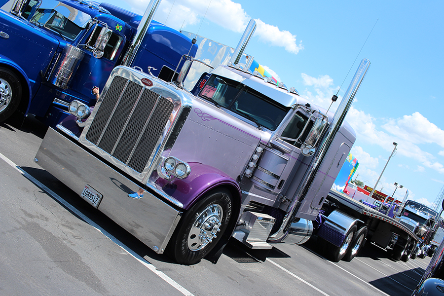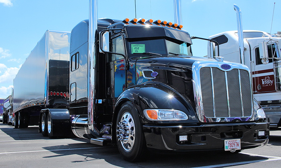 LIGHTS (BOBTAIL): 1st Bob Harley, Burbank, OH – 1972 Purple Peterbilt 358A (Bad Attitude); 2nd Doug Jameson/James Williams, Springfield, MO – 2015 Red & Black Peterbilt 389 (Contender); 3rd Erlys Gonzalez/A&A Stainless Steel, Opa Locka, FL – 2005 White Peterbilt 379.