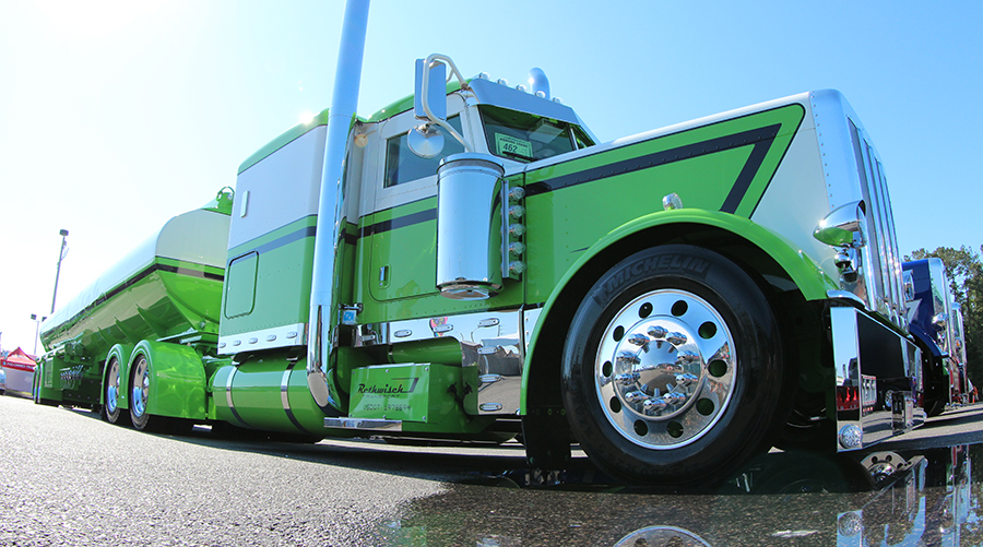ENGINE: 1st Randy Menkel/James Williams, Springfield, MO – 2013 Black Peterbilt 389/2015 Etnyre Detachable Heavy Haul; 2nd Jeff Schultz/Rethwisch Transport, Elroy, WI – 2013 White & Green Peterbilt 389/2012 Polar Tanker (Blood, Sweat & Gass); 3rd Sid Colangelo/Kyle Cousins, Carthage, MO – 2015 Purple Kenworth W900L.