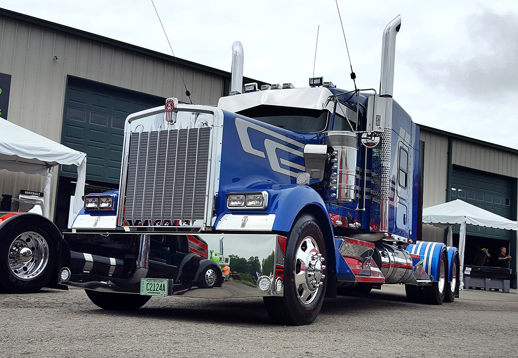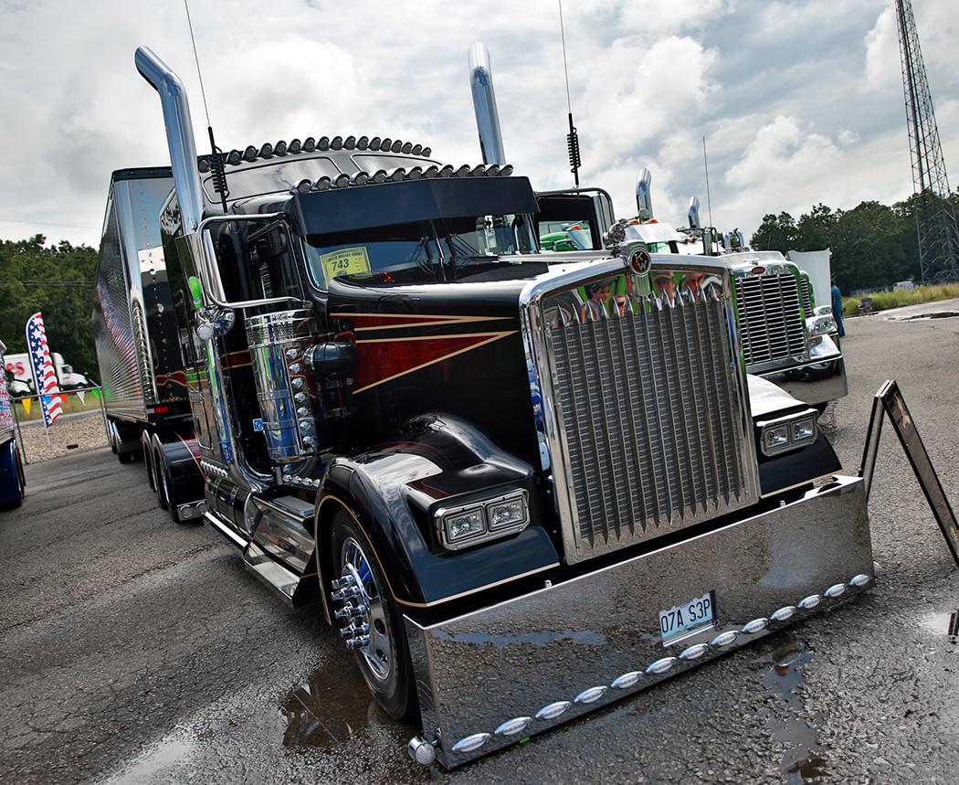 Rain and truck shows just aren’t a good combination. Making my way from Wisconsin through heavy rain, I wondered how my weekend at the 2nd stop of the 2016 Pride & Polish truck show series, held at Fitzgerald Glider Kits on July 15-16 at their facility in Crossville, Tennessee, was going to go. Arriving the evening before the show actually started, I stopped briefly to get a sneak peek at the trucks in attendance and was glad to see many trucks already there, despite the difficult weather conditions, including Eilen & Sons’ 2014 Peterbilt 389, from Hampton, MN, parked up on the hill overlooking the event. Knowing that this is the rig that hauls Eilen & Sons’ latest show truck around, I couldn’t wait for the show to begin.