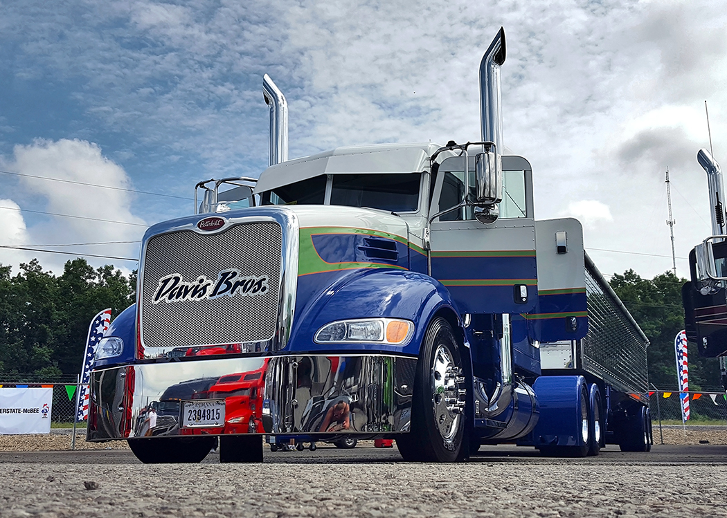 LIMITED MILEAGE BEST OF SHOW (COMBO): Brian Davis/Davis Bros Trucking, Owensville, IN; 2014 Blue & White Peterbilt 386 and 2016 Wilson Hopper (Buzz Kill).