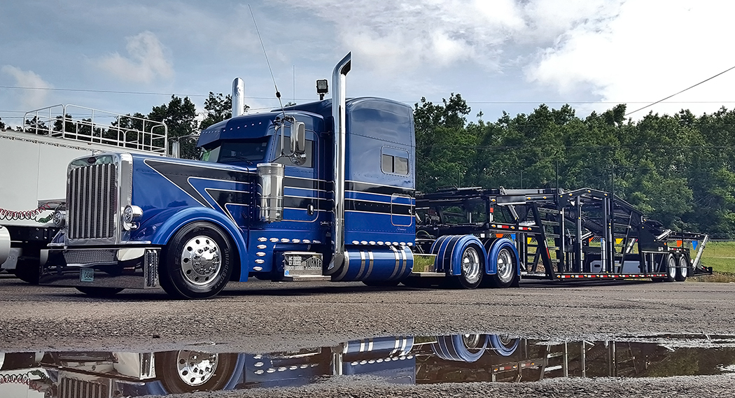 BEST OF SHOW (WORKING COMBO): Eric Turner, Ellenwood, GA; 2015 Sovereign Blue Peterbilt 389 and 2016 WallyMo Car Hauler (Show Time).