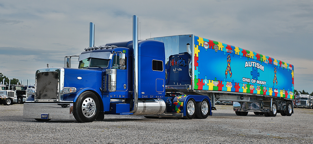 PAINT (COMBO): 1st Cline Everhart/Everhart Transportation, Inc., Greenville, TN; 2000 Red Freightliner Argosy; 2nd Cline Everhart/Everhart Transportation, Inc., Greenville, TN; 2007 Red Kenworth W900L and 2016 Utility Van; 3rd Eric Turner, Ellenwood, GA; 2015 Sovereign Blue Peterbilt 389 and 2016 WallyMo Car Hauler (Show Time).