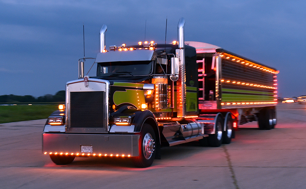 The weather was nice and humid in Rantoul, but Chicago was experiencing record rainfall and massive flooding.  Needless to say, all of the trucks coming to the show from the upper Midwest got a free truck wash.  We arrived on Friday night, just in time to see the sunset, as the town was ready for the light show parade to kick off the weekend event.  And they were not disappointed, as one truck after another turned the parade route, which was well over a mile long, in a spectacular glowing display of lights and chrome.  It was really something to see, and it set the tone for the rest of the weekend.