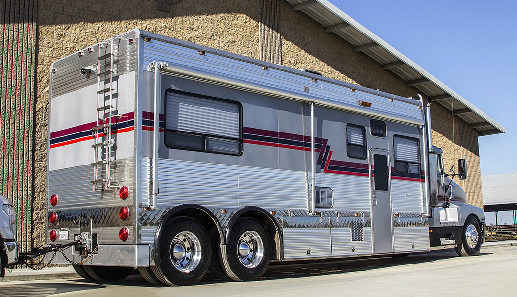 Going to each event was a lot of work, but Robert loved it. Originally towing his machine with a 1975 Chevy pickup, he later bought a 1982 GMC four-door dually with a camper on the back. Participating in up to 25 events a year up and down the state of California, Robert saw the need for a larger hauler and more room for his family. Not wanting to just buy something average, he decided to purchase a new Kenworth glider kit and build the ultimate heavy-haul RV.