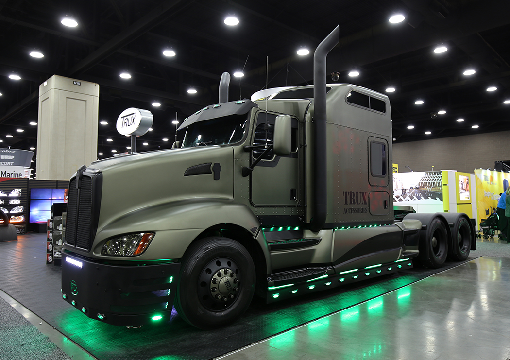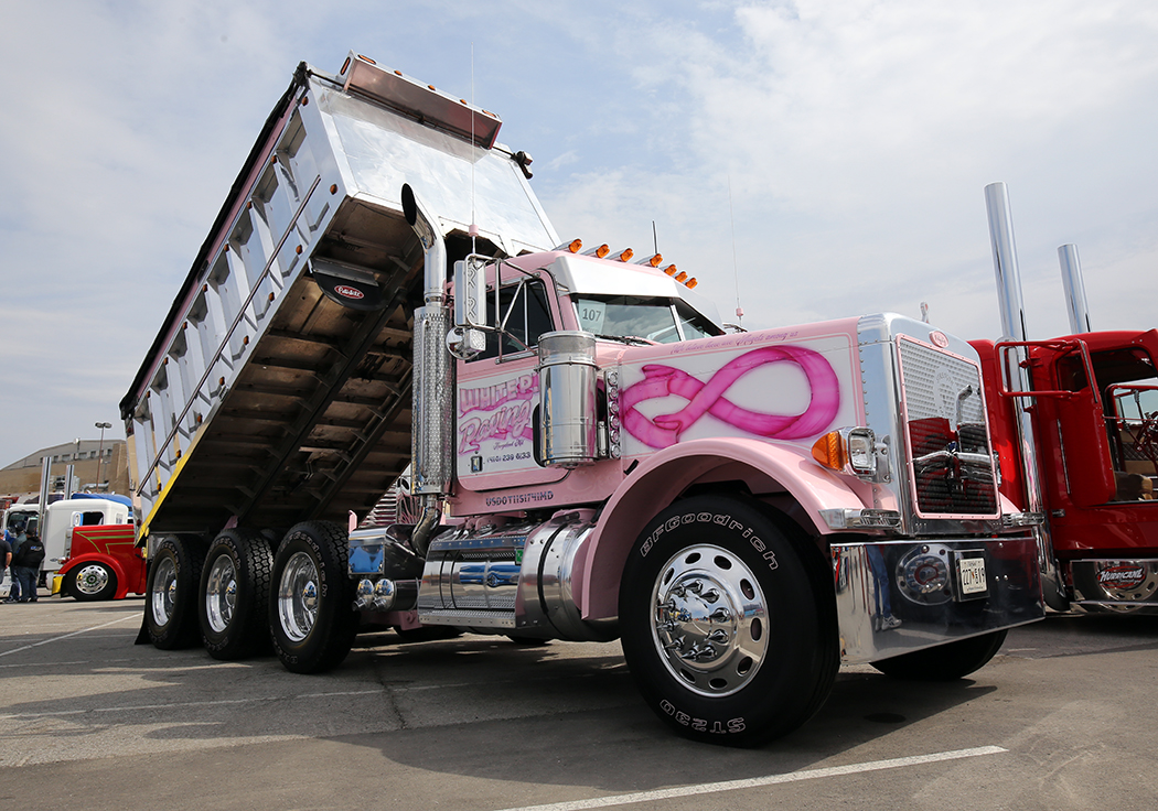 Our booth was in the North Wing, which was packed with exhibitors and bustling with activity.  Having heard that most of the manufacturers were returning, after taking a one-year hiatus, we were surprised that not all of them came back.  Peterbilt and Kenworth were there on full display while Mack and Western Star had somewhat abbreviated booths, but Freightliner, Volvo and International were nowhere to be found, which made the usually-awesome South Wing a little quieter than normal.  The West Wing, like always, was a mad-house.  But for us, the fun is always outside – with the show trucks – and although rain was predicted for almost every day of the show, very little actually fell.  In fact, it was some of the best weather we had seen in years!