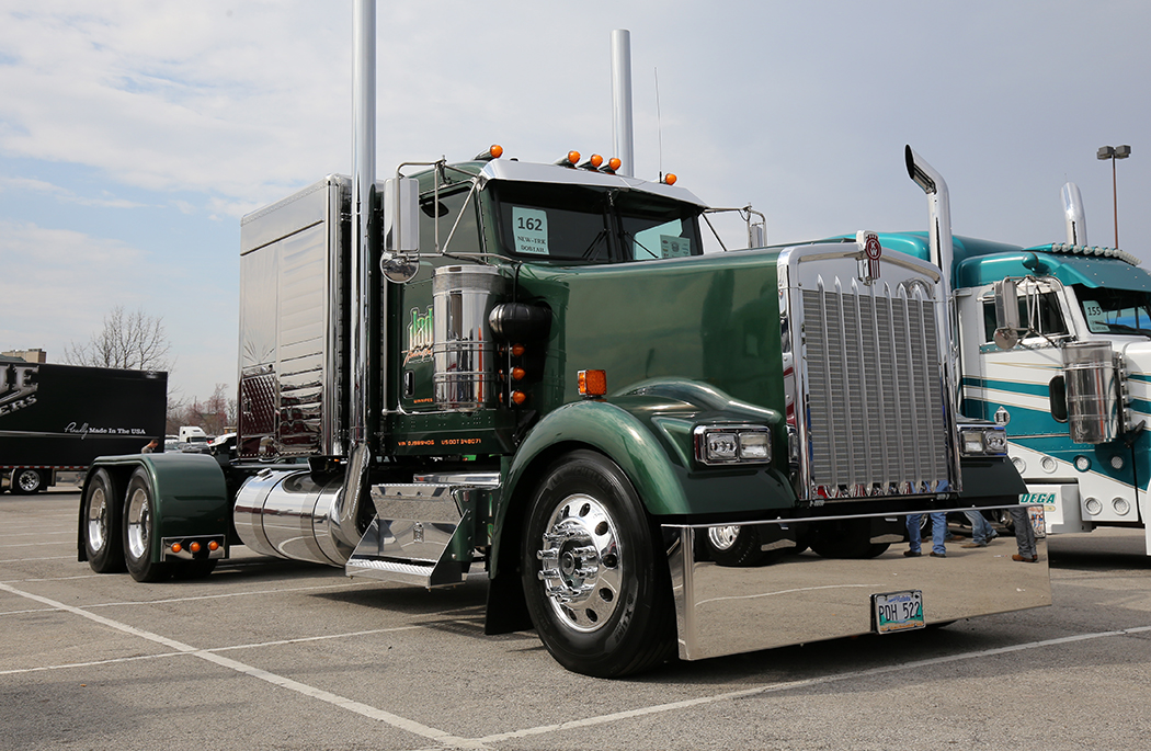 This year’s “Best of Show” winners were a mix of old favorites, along with some new rides.  Our friend and past cover trucker Bob Harley not only bagged the Best of Show Limited Mileage Bobtail award with his 1972 Peterbilt 358A, but he also got Best Engine, Best Paint and Best Interior.  Other returning favorites included Sid Calangelo of Fleenor Bros. and their “Ace in the Hole” KW (Best of Show Limited Mileage Combo), along with Jon Donadio and his mint green KW (Best of Show Working Dump).  A newly-built rig that did very well was brought out by Aaron Spiniolas of Ridge Crest Trucking in Harvard, IL.  Aaron’s cream and maroon “Cream of the Crop” 2001 Peterbilt 379 not only took Best of Show Working Bobtail, but it also took a 2nd place and three other 1st place trophies, too.