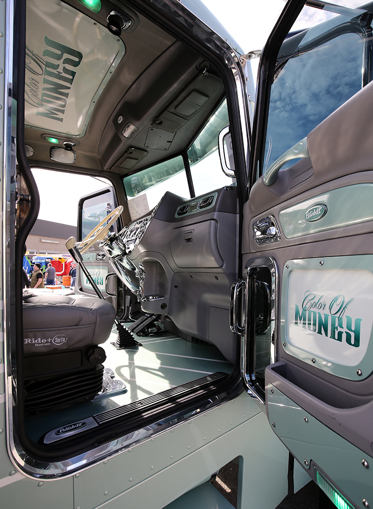 WORKING INTERIOR (CAB ONLY): 1st Eric Turner Sr, 2015 Peterbilt 389 and 2016 Wally-Mo car carrier; 2nd Stephanie Robak, 2006 Peterbilt 379; 3rd Justin Mosser, 2004 Peterbilt 379.