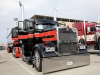 Some of the other big winners included Bill Warner Jr. and his maroon and cream 1987 Peterbilt 359 and 2010 MAC dump trailer, Eric Turner Sr. and his blue and black “Show Time” 2015 Peterbilt 389 and Wally-Mo car carrier, and Steph and Jake Robak’s “End of Watch” tribute truck (a 2006 Peterbilt) in honor of fallen police officers (see full story on page 36).  The latest rig from J & L Contracting, a red 2008 Kenworth W900L with white stripes, brought out by Dustin Shipman, took a couple trophies, but it deserved a whole lot more – it was amazing!  Colton Chase and his black and marbleized gray 2002 Pete and Timpte hopper were lookin’ top-notch, as was Jason Krause and his baby blue with white stripes “Flashback” 2015 Peterbilt 389 (the interior on this thing was dialed-in).