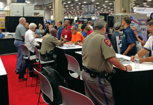 Please join our Ol’ Blue, USA “Safety Center”® at the Great American Trucking Show (GATS) in Dallas, Texas on August 24, 25 & 26 in booth 17053 and 18053. We are pleased to announce that Lt. Monty Kea and his team from the Texas Highway Patrol will be joining us in Dallas again this year. As you can see in the photo, taken last year at GATS, many drivers took advantage of the opportunity to ask their questions and/or voice their concerns about the laws and regulations they deal with on a daily basis directly to the law enforcement officials in our booth. We are here to help, not harass, so come by and talk to one of our friendly and educated troopers. Photo by Monty Dial.