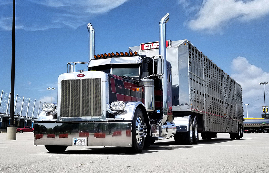 Saturday morning, May 20, was the last day of the show. I made my way to the grounds and was able to get more pictures, even though the sky was gray and no sun was visible. I caught my good friend and owner-operator Ingrid Brown as she rolled in with “Miss Faith” – her white and blue 2017 Peterbilt 389, with a curtainside trailer in tow. By mid-day, the gray sky went away, and in its wake came a sun-shiny, beautiful blue sky, along with those white puffy clouds that I love. I had the opportunity to visit with Ingrid and Dustin Ballard, who rolled into the show earlier in the week with the truck he drives for JRC Ranch. His rig is a classy 1995 Peterbilt 379 which is based out of Stigler, OK and pulls a 2016 Wilson Silver Star cattle trailer. As the afternoon turned to evening, I enjoyed a great dinner with a few longtime friends, and made a few new ones, as well, before settling in for the night.
