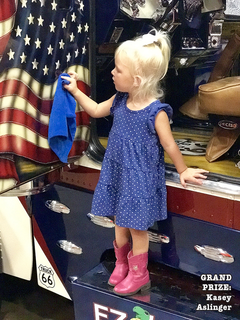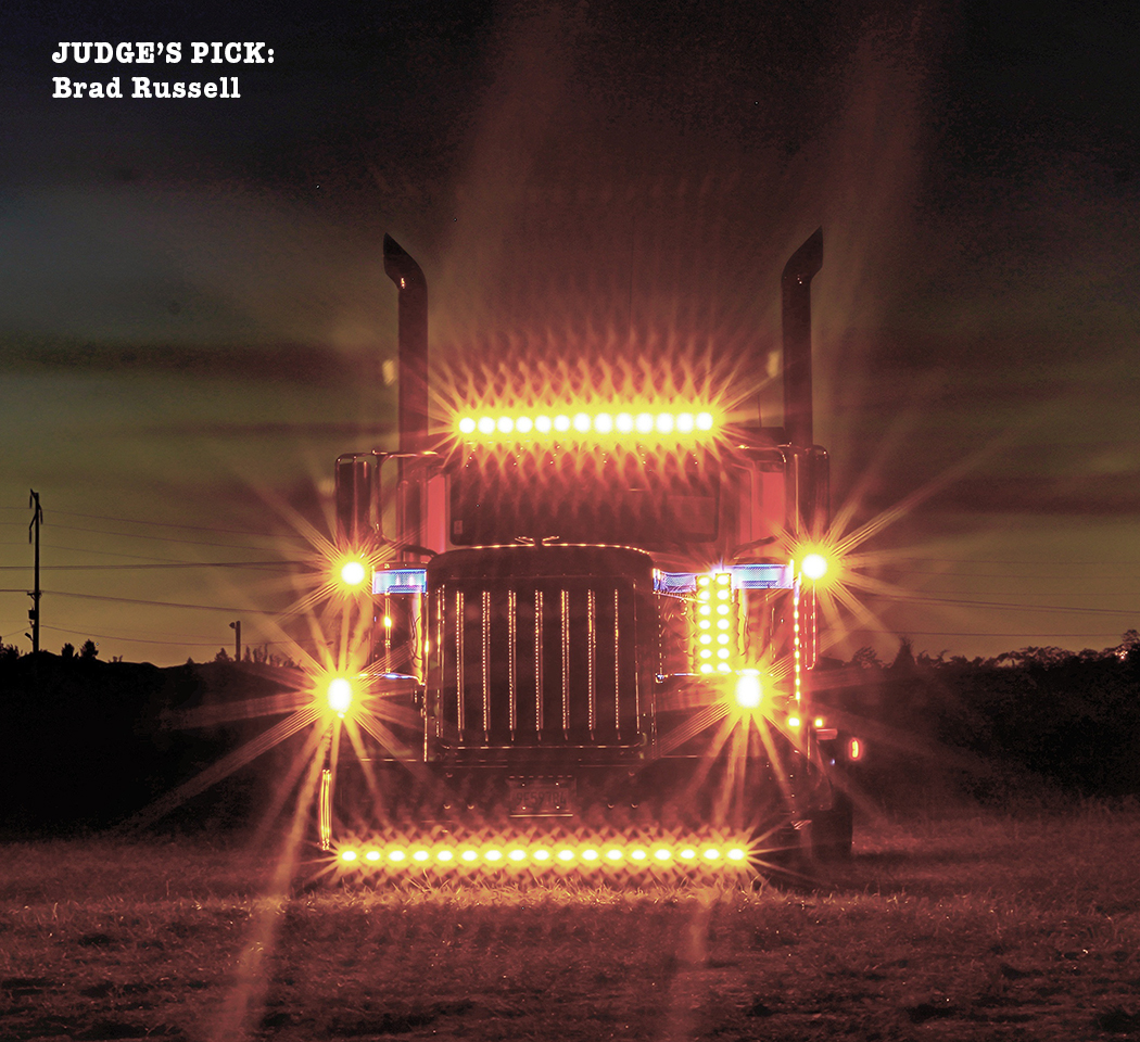 Our Grand Prize award went to Kasey Aslinger of Marquand, MO. The simplicity and patriotism of this candid photo captured all us – in fact, it was the only one to be chosen by all four of the judges! The Aslinger’s 1996 Peterbilt is custom from top to bottom and features an Americana theme, which includes the custom fiberglass American flag door panels, made by White Trash Customs and then airbrushed by Bradley Wilson, which their 3-year-old daughter Jolie can be seen cleaning at a truck show in the photo. Their company, EZ Livin Express, hauls cars and oversized vans that are usually too big for a standard car carrier. The Aslingers did 17 shows last summer with all four of their girls. Through these shows, they have been able to teach their kids about the rewards and sacrifices of hard work. It’s not always winning or losing that really matters, but the journey and the friends you make along the way. But, in this case, they won! Prizes include “10-4 Bucks” ($104), a 10-4 sweatshirt and t-shirt, and a complimentary one-year subscription to the magazine.