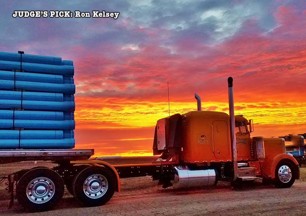 Heather’s pick went to Ron Kelsey of Avondale, AZ. This shot was taken near Brawley, CA – at “Sunrise” of course! Ron and his “Sunrise Express” have been on our cover twice (1998 and 2009). Ron purchased this 1981 Pete 359 Short Hood back in 1984 – it was the first (and only) truck he ever bought. And although it has undergone a few makeovers, it has stayed relatively the same for most of those 33 years. Heather chose this pic because of the beautiful sunrise. Heather loves sunrises – it is the quiet before the hustle and bustle of the day begins, which is what this photo represented to her.