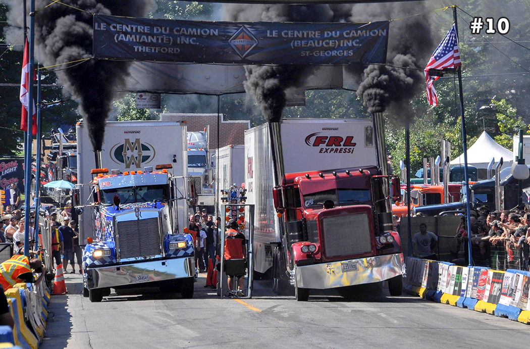 This past Labor Day weekend, if you happened to turn your head towards the north, chances were pretty good that, if you listened closely, you could hear the noise filtering down from Quebec. It was generated by the 13th running of the unique Truck Pulling and Acceleration Competition. Semi-trucks from all over Canada and the United States converge on the tiny town of St. Joesph DeBeauce to take their turn scaling 700’ of St. Christine Street – a 9% uphill strip of pavement deemed one of the steepest and longest challenges in Canada.