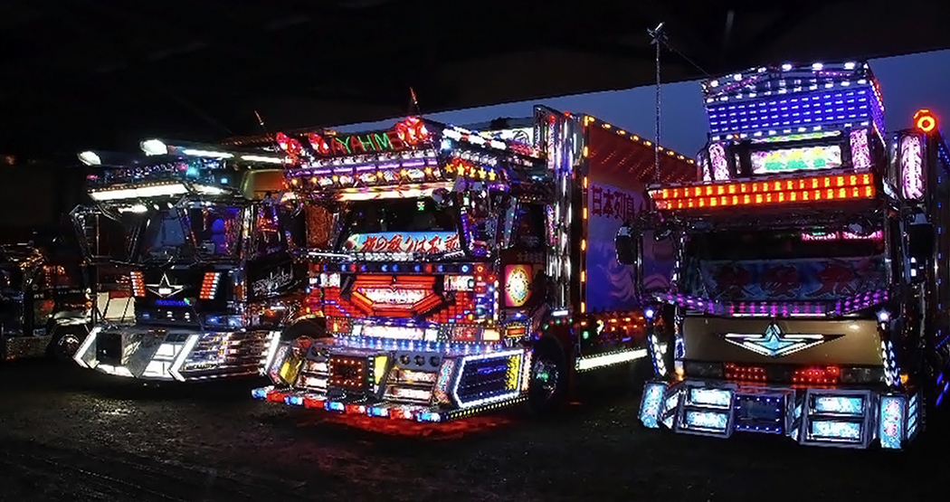 A host of Japanese haulers are obsessed with chrome and lights, and a lot of trucks in Japan have various cab panels, fenders and wheel trims made out of the shiny material. The Dekotora (an abbreviation for “decoration truck”) is a type of extravagantly decorated truck in Japan. Commonly displaying neon or ultraviolet lights, these trucks have extravagant paint and stainless or golden parts, on both the exterior and the interior of the vehicle. These Dekotoras may be created by workers out of their work trucks for fun, or they may be built by hobbyists for special events and shows.