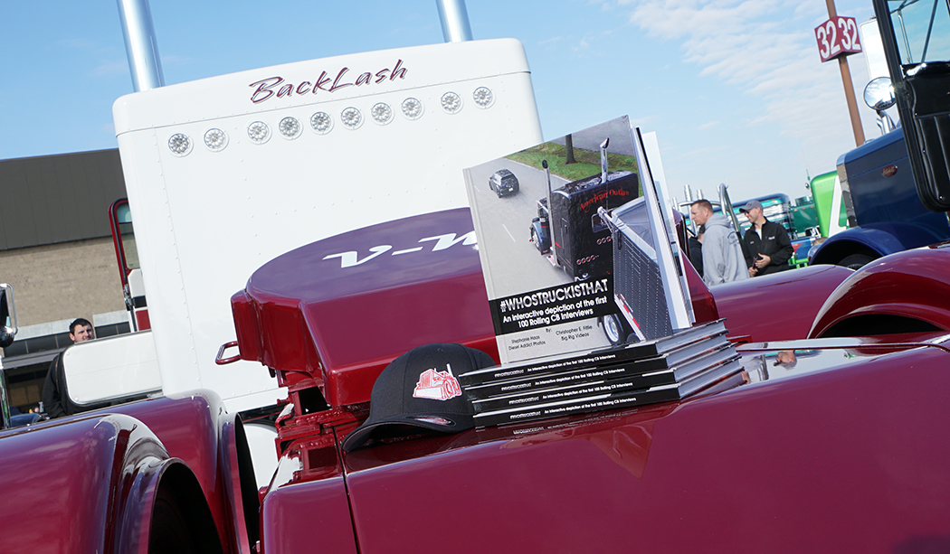 directs the user right to that particular Rolling CB Interview. After months of work and many late nights, the book, called #WhosTruckIsThat, was finally unveiled at the 2018 Mid America Trucking Show (MATS) in Louisville, KY, where it was well-received. Making this book a reality took teamwork. Christopher designed each page, and Stephanie watched every video to write the articles, provided photos from her archives, and communicated with the printing company throughout the process. The result is a product of dedication and the promotion of an industry in a positive manner. This hardcover coffee table book is 212 full-color pages and is a book the whole family can enjoy. Each page is printed on thick, high-gloss paper, and includes many images that haven’t been seen by the public – until now. Feedback on the book has all been positive, and having read through it myself, I can say in all honesty that this is a great read with an eye-catching design. The book, which retails for $85.00, is available online at www.bigrigvideos.com and can be shipped anywhere in the world. This interactive book is a must-have for anyone with a love for semi-trucks. Get yours today!