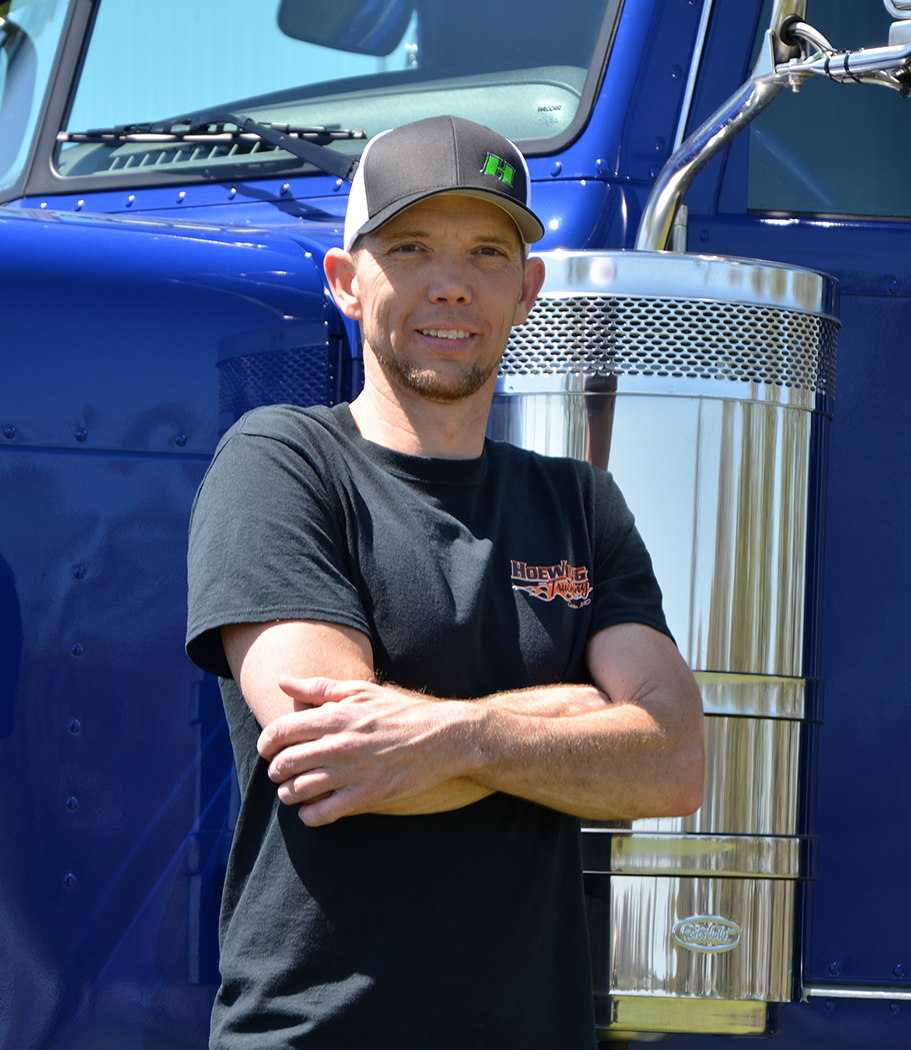 Things were going good until their father, Wayne, was tragically murdered in 1997. The following year, the boys took their inheritance and paid off all the debts and changed the company name to Hoewing Trucking, LLC and never looked back. One of their drivers is a certified “truck nut” named Kevin Benson. Kevin (pictured) has worked for Scott for a total of about 15 years, having left a few times to “stretch his legs” but always coming back. Scott is a firm believer in hard work, saying, “If you work hard for what you want, you will go far,” so when it came time to get Kevin a new truck, they called me.