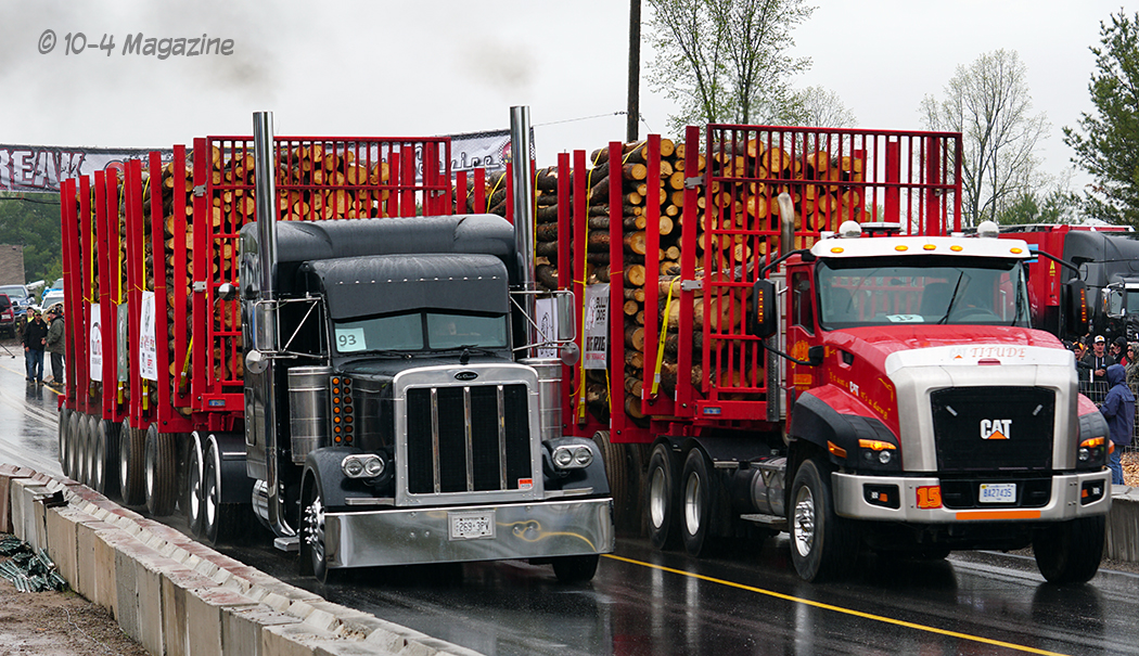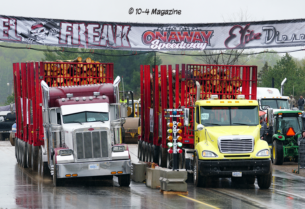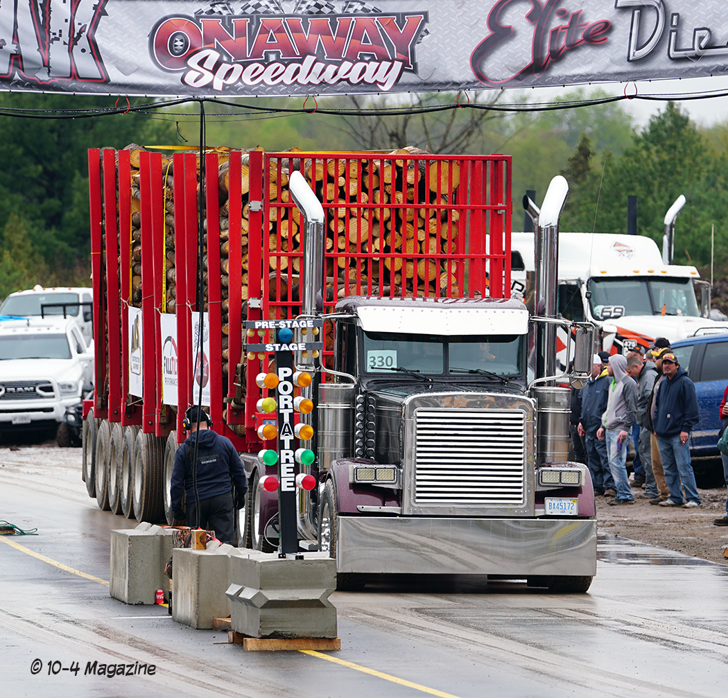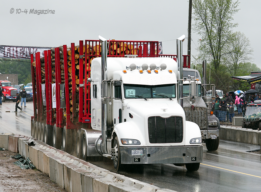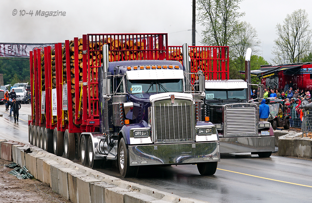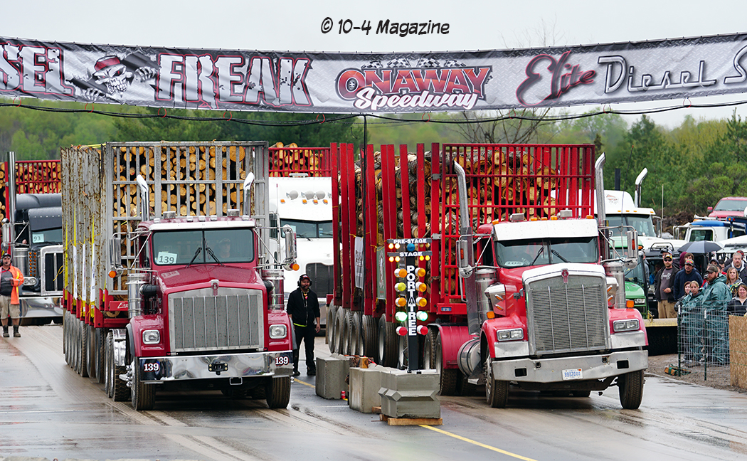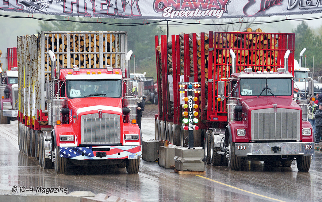 Why loaded log trailers? Northern Michigan is known for its logging industry, so it only seemed fitting to have the trailers loaded with a product providing economic activity in that region. Not only a necessary industry, but Mike Sturgill also owns a logging company. With that, he has at his disposal a truck scale, so the logs could be loaded and weighed, making sure each trailer was within 10 pounds of the 125,000-pound mark. Usually, for uphill drags, they pull loaded box vans, lumber or concrete barriers, but the logs just seemed appropriate and fitting for this event in Michigan.