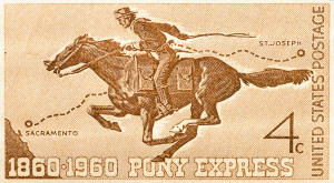 JulyBook1Click. No stamps. And email sent. You didn’t have to hunt an envelope down, and no trip to the mailbox – within a minute or so, the recipient of your note read it and can reply as quickly, even if they live on the other side of the world. You gotta love technology – even more so after you’ve read “West Like Lightning” by Jim DeFelice. Everyone was tense on that evening in November 1860, but nobody more so than the young man who was pacing on a porch in Ft. Kearny, Nebraska. As soon as word came from St. Louis – word that held the fate of the United States – he’d jump aboard a pony and head west because he was an employee of the Central Overland California & Pikes Peak Express Company, the Pony Express, or just “the Pony.” The Pony had begun just a few months before, a creation floated by three partners, one of whom was a bit of a criminal. William Hepburn Russell, William B. Waddell and Alexander Majors knew that success for their endeavor relied on quick missives between Missouri and California at a time “when weeks, if not months, were the norm for coast-to-coast communication.” Ultimately, once riders learned their routes well and knew where the dangers lay, the Pony reduced that communication time to a mere ten days. But first, funds had to be prepared and contracts JulyBook2signed to the tune of over $68 million in today’s money. The company bought more than 7,500 oxen and thousands of ponies, most of which were “half or mostly wild when bought.” Riders weren’t required to wear uniforms, but guns were a necessity. Stationmasters and supervisors were hired to hold the whole operation together; they were, says DeFelice, “unsung heroes.” And yet, despite speedy delivery of the news, despite that the population of the West was growing, despite the romance it would gain over the decades, the Pony was only meant to be temporary. Eighteen months after it began, it was done. Imagine, if you will, that your book is embedded with hundreds of tiny firecrackers and each time you read something enlightening or surprising, one crackles. That’s what it’s like to open “West Like Lightning.” And it isn’t just that author Jim DeFelice writes about a small page in American history, he also entertains. We learn about the shadiness of one of the Pony’s founders, and also hear tales of the riders themselves, too. Even the unknown facets of the Pony Express are treated with a lightness that makes readers want to learn more. It also helps that DeFelice doesn’t ignore the rest of America’s colorful characters of those pre-Civil War days. This is a no-brainer for Western enthusiasts. It’s a must-have for historians and fact-fiends. Start this book and enjoy the ride. “West Like Lightning” will get your stamp of approval.