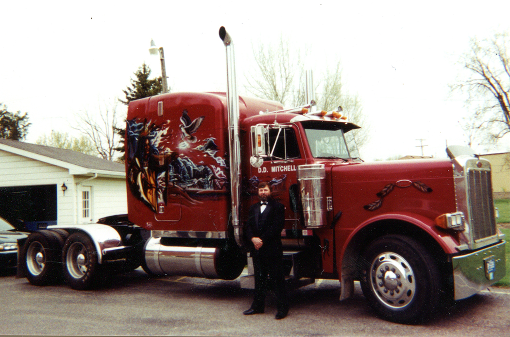 Over the last few decades, Dennis has driven over 4 million miles – two of those million in the older Peterbilt (with the buffalo on the top of the hood), and the other two in a newer Peterbilt he still runs today. During that time, Dennis has spread the word that truckers are the last gypsies and cowboys of this land.