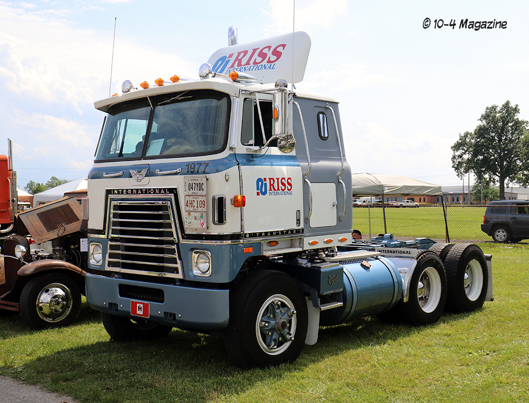 In addition to Ed Wilson’s sweet Transtar (there were a bunch of cool Transtars), some of the other vehicles that caught my attention was Reiselt’s Machine Works of Radnor, Ohio, with their 1958 IH R-190 mounted on a 1990 Ford F700 chassis with a 5.9 Cummins and an Allison automatic. This ex-fire truck, with a patina finish that has been clear-coated over, also has 5-inch dual stacks from Chrome Depot (one of the sponsors of the show). Donnie Uphaus of Michigan brought down a dark green Peterbilt 346 cab and chassis on a trailer. Powered by a Detroit 6-71 with a 10-speed and a 3-speed auxiliary, which doubles as a transfer case for the 6 x 8 application, this unit was originally built to be a mixer, as “MIXER” is stamped into the serial number of the truck. Titled as a 1974 but built in April of 1973, Peterbilt only built ten of these trucks, and there might be only four or five of them still in existence today.