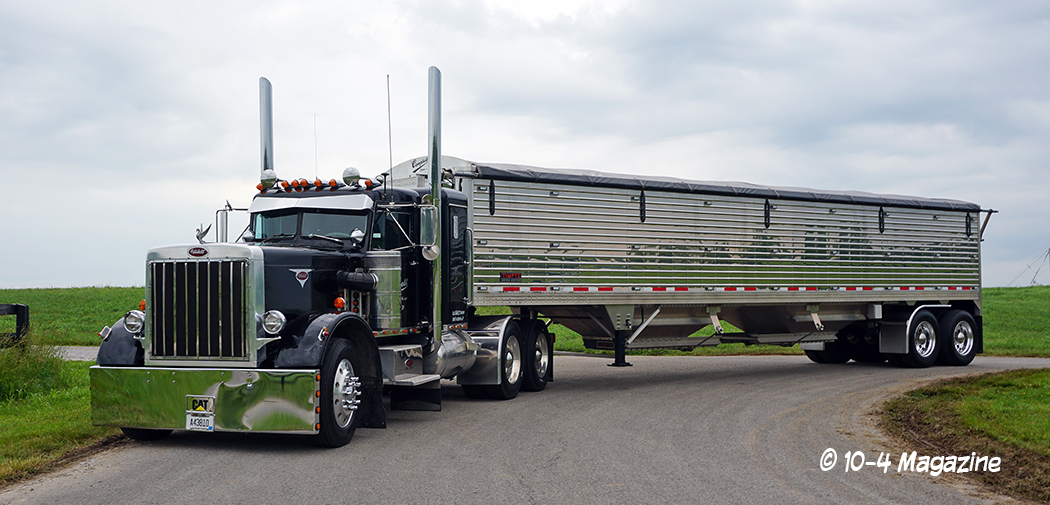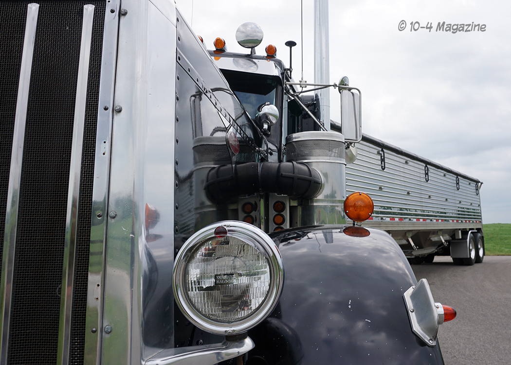 The featured 359 here pulls a 2015 Timpte Super Hopper (pictured), as well as a 1985 Polar tanker that hauls Liquid Nitrogen (fertilizer). That is all he has ever hauled – agricultural commodities. During harvest season, he hauls grain off his farm, as well as neighboring farms, in the area. Upon purchase, the truck had a 1693 CAT under the hood which, at that time, for a factory extended hood, the only options were a 1693 CAT and a V12 Detroit. About a year after the purchase of this truck, Jack put a 425 B-Model CAT in the truck. The truck still has the original 13-speed double-overdrive transmission with 3:55 gears and a 263” wheelbase. Jack’s goal was to keep this truck as original as possible with the addition of 3/4 Hogebuilt fenders. As shown, the trailer has matching 3/4 Hogebuilt fenders, as well.
