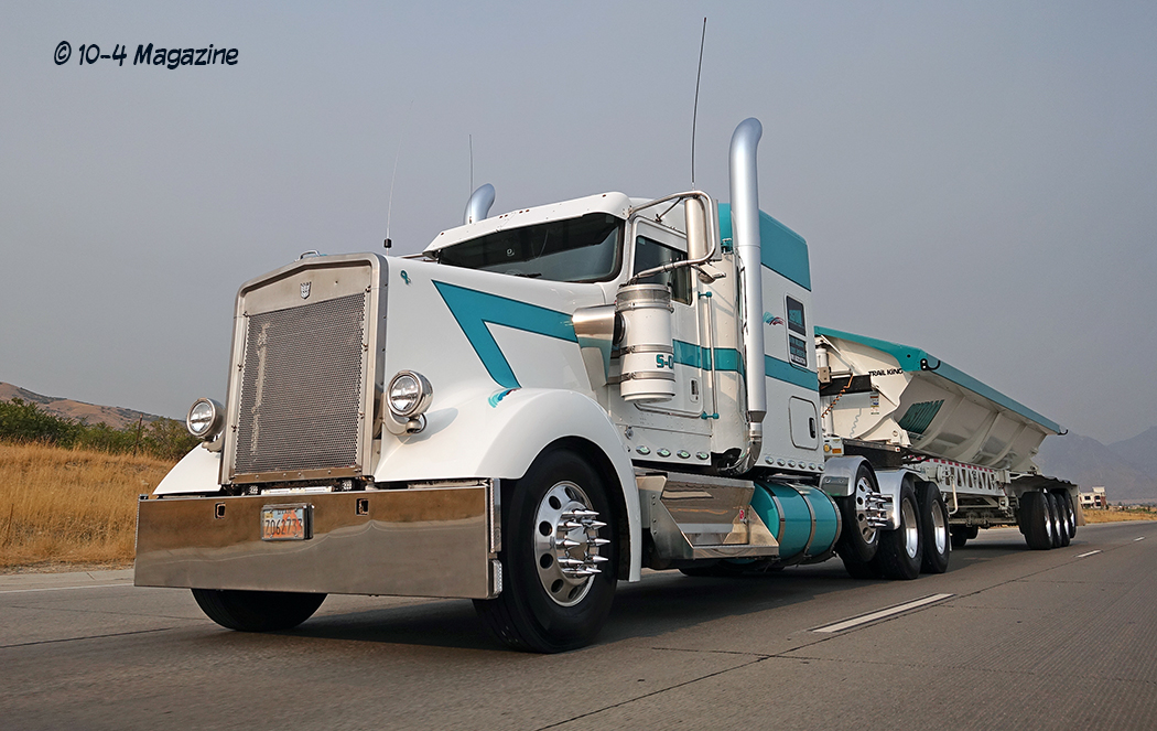 October 28, 2017 Erich married his wife Baylee and together they now have a 9-month-old son named Malakia. In March 2018, Erich bought what would become that truck he always dreamed about and his daily runner – the 2008 Kenworth W900L. This truck, once the custom work was done to it, went on the road pulling a matching 4-axle 2016 Trail King side dump trailer and was unveiled at the 2018 Great Salt Lake Truck Show, which caught my eye and earned him the 10-4 Magazine Sponsor’s Choice award.