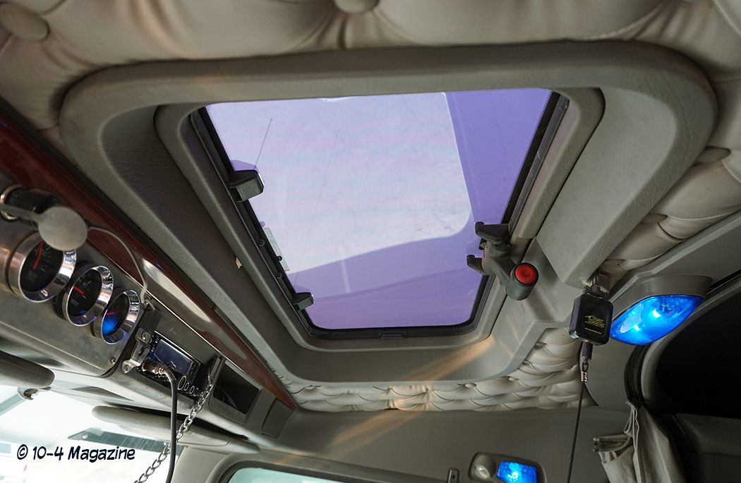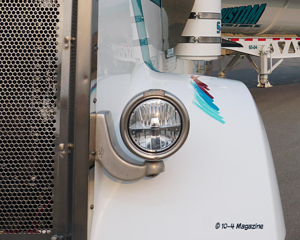 The truck boasts a 600-hp C-15 CAT under the hood with a single turbo conversion kit, an 18-speed Eaton Fuller transmission, 3:36 gear ratio, a 295” wheelbase and 40,000-pound rear ends. The truck also sports 8” exhaust, striking paint by Rob Schmidt Body and Paint, and lots of “Dual Revolution” LED lights from Trux that switch from amber to green and red to green. Even though the teal ribbon on the side of his truck hood doesn’t represent Osteosarcoma, specifically, it still represents all those affected by cancer, including himself.