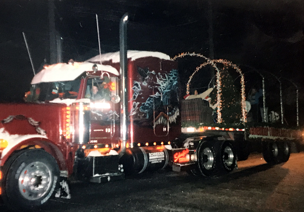 rig are shining brightly on the new-fallen snow, and there is a fog from my exhaust stacks that fades away into the night. Life doesn’t get much better than this. I will be dreaming of my home time and Aunt Barb’s home cooking at our homestead. I can almost smell the coffee and… well, till next we meet, I’m sending holiday cheer from my house to yours. Merry Christmas to all and to all a good night! 10-4, over and out!!