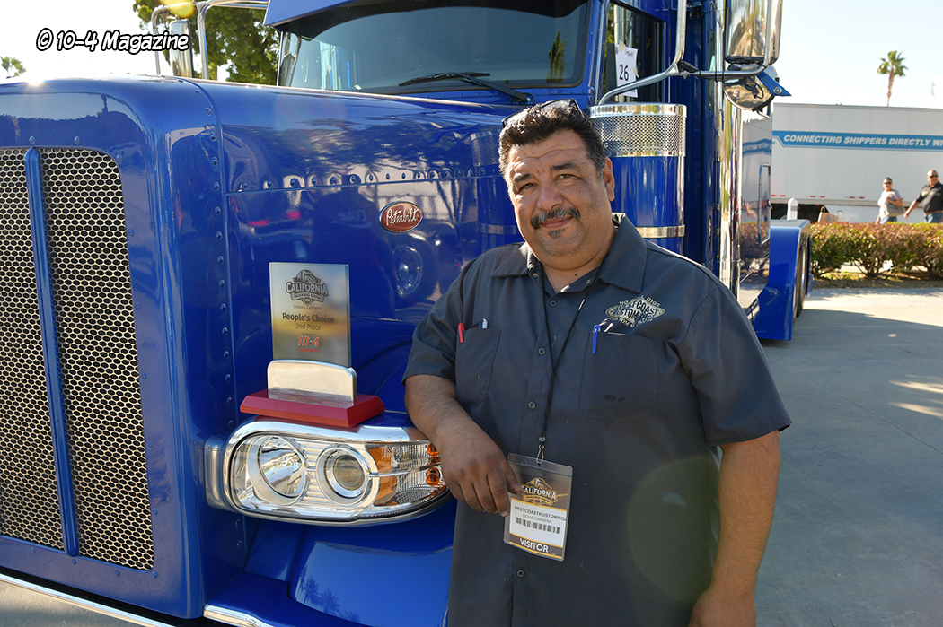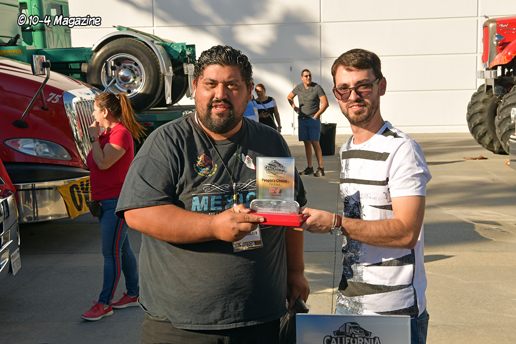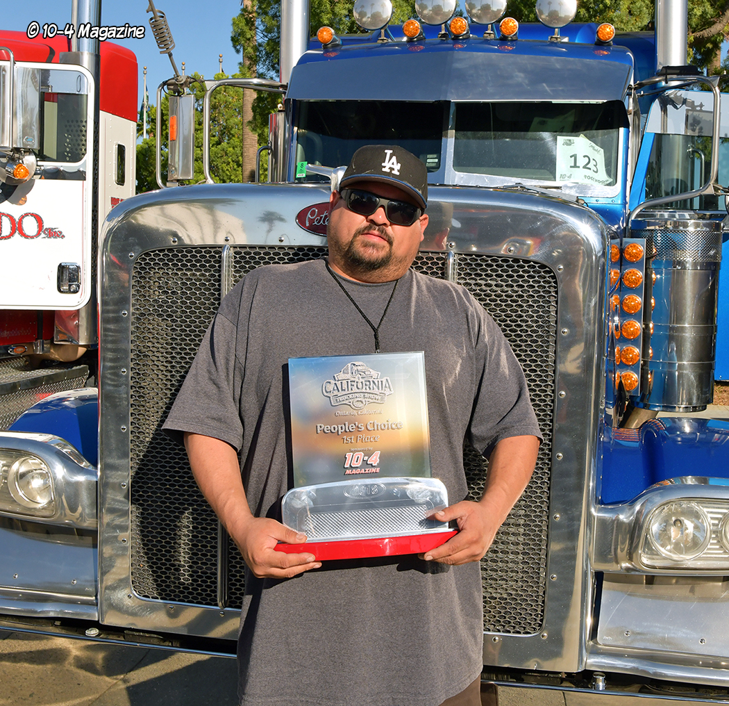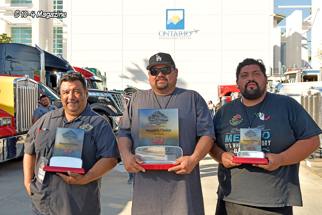The show had a small truck beauty competition happening outside, near the main entrance, where about a dozen trucks were parked, trying to woo the visitors to vote for their favorite rig. The People’s Choice awards and trophies, which were sponsored by 10-4 Magazine and Rockwood Products, were announced on Sunday afternoon. Voted on by the people at the show, the winners were: 1st Arturo Casas (blue Peterbilt 389); 2nd Cesar Carrera (blue Peterbilt 389); and 3rd Clemente Rodriguez (black International Lonestar). Congratulations to the winners!
