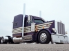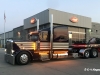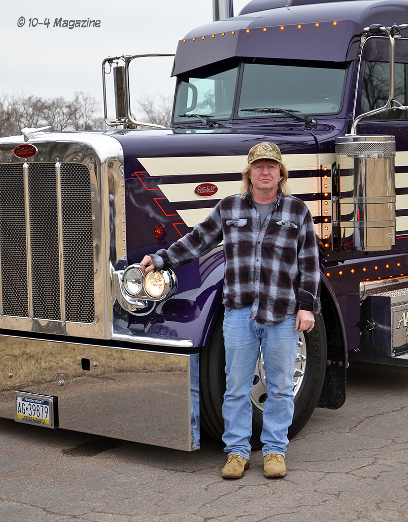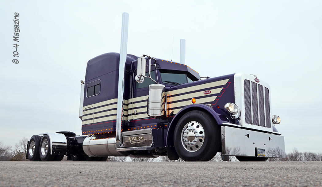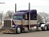 With owner operators around at work, Mark heard them talking about how much money they made, so he decided that he needed to buy a truck. After saving his money, he bought a used 1993 Kenworth W900 in 2000 and leased-on at A. Duie Pyle. He did this for a couple years and then bought a reefer. Over the next few years he switched jobs several times. In 2006 he bought a new 379 Peterbilt, and the following year he leased-on to Admiral Merchants, where he has pulled either a stepdeck or flatbed ever since. In April of 2013 he purchased a new black and tan 2013 Kenworth W900L, which he ran until he bought the new Peterbilt 389 pictured here.