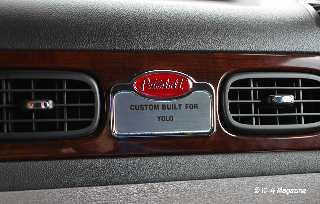When making the order, Mark specified that “CUSTOM BUILT FOR YOLO” be on the dash plaque. But he also said you actually live every day and only die once (as far as we know), so that YOLO acronym – you only live once – isn’t even really correct. “On your death bed, you won’t ever say I wish I could have worked another day. Just do stuff you want and live a little. Don’t be afraid to do cool stuff.” His truck is just like that, as it’s not just a lot truck with store-bought chrome. Mark also has a Pete 359 long hood he plans to fix up, just in case he might want to make a few rounds in a cool classic rig, because you only live once, so… “Live a little!”
