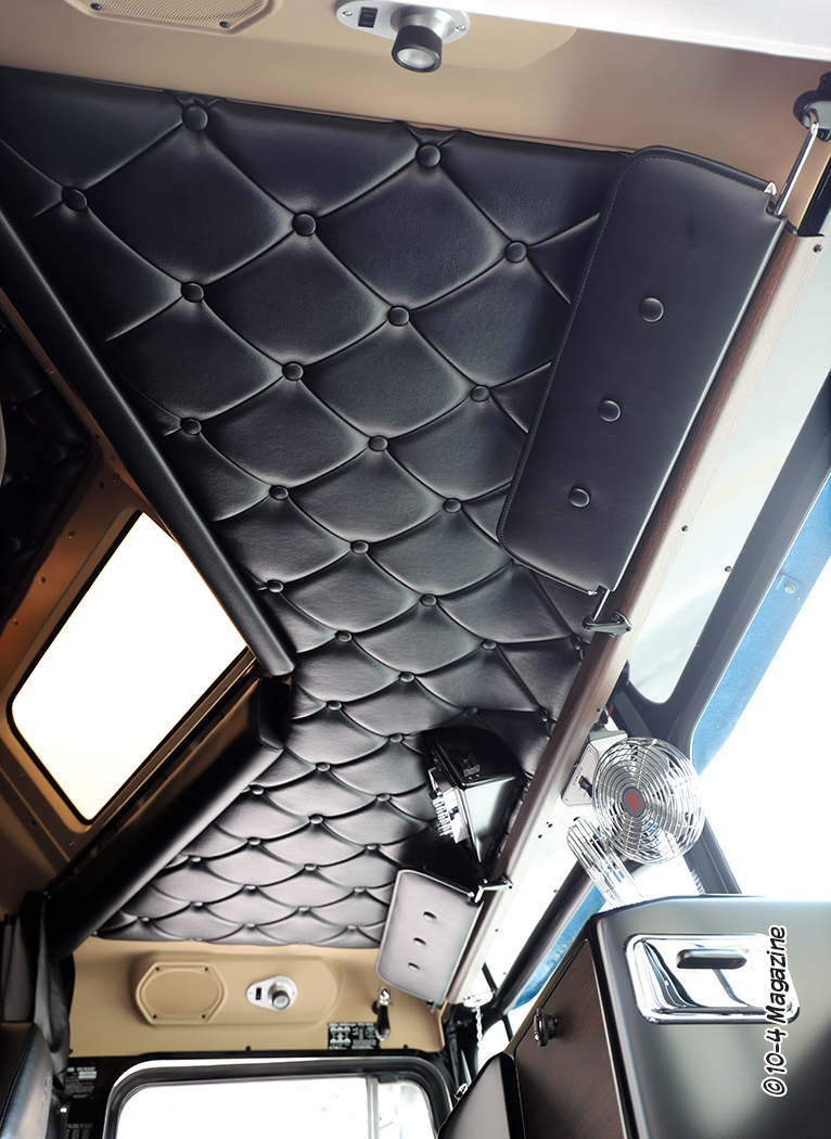 Before the interior was installed, Paul first insulated the walls and ceiling of the cab and sleeper with lightweight 3/4-inch foam residential insulation sheets, and then used HushMat on the rest. Having a tilt cab, Paul did not want to add too much extra weight to it, so he only used the HushMat on the doors and floor. Wanting to retain the look of the truck’s original VIT interior, Paul called his friend Ray Griggs, who has been doing automotive upholstery for decades. Again, Paul was very involved in the process. Using 1/8-inch plywood, Paul cut templates of every panel, noting where the screws would need to be placed and where the diamonds and buttons would be located. He then took each template to Ray, individually, where each piece was double folded before stitching the diamonds, virtually hiding all the stitching. Assuring precise fit and finish every step of the way, these new pieces are better than the original factory panels.