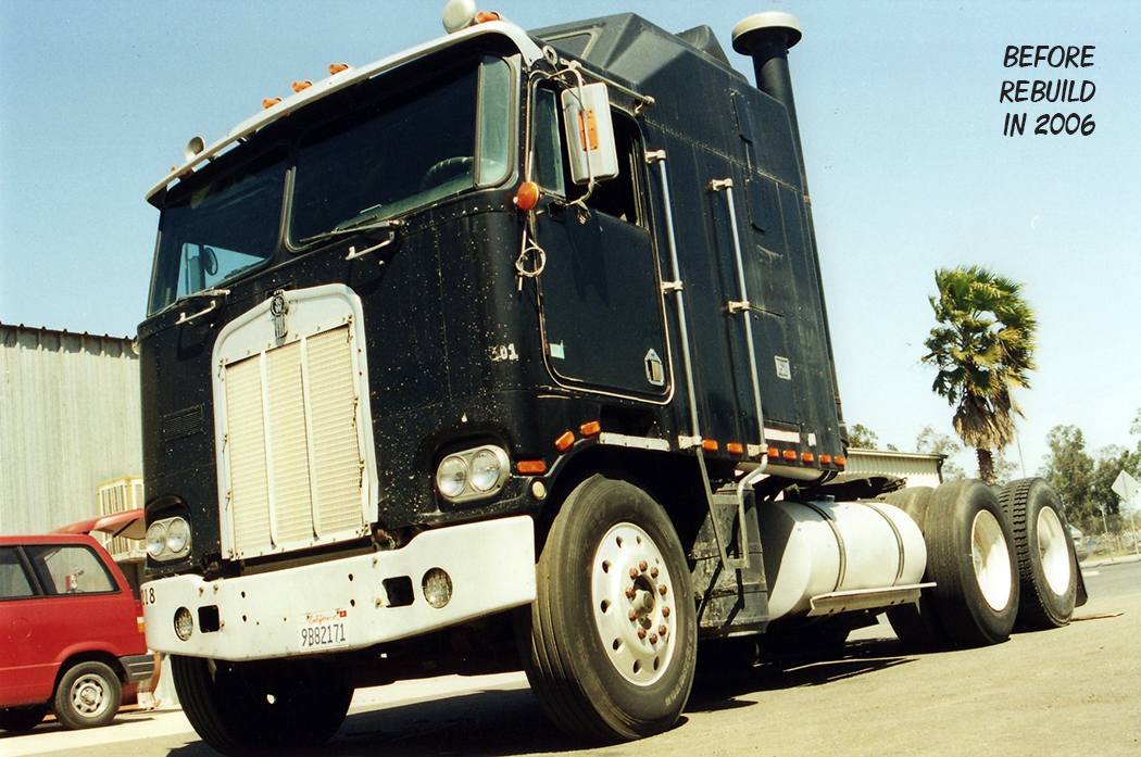 Over the years, Paul has fulfilled many of his childhood dreams, including restoring several 1950s-era Cadillacs, but he still wanted a truck. In 2006, Paul stumbled upon an ad for a 1979 Kenworth K100C Aerodyne with the big 108-inch cab that was for sale at a lot in Fontana, CA. Driving out to look at the truck, which was in rough shape, the salesman there said they were about to send the truck to the scrap yard, so Paul decided to save it. Giving the man a $500 deposit, he said he would be back in a week to pick it up. He had no money, nowhere to put it, and he didn’t even have a CDL so, legally, he couldn’t even drive it, but he bought it anyway.